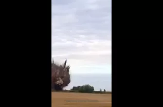 Кадры применения разведывательно-ударного БПЛА «Орион» для удара по, предположительно, 155-мм колёсной гаубице «Богдана» ВСУ в приграничье
