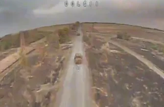 Встреча нашего FPV дрона «Князь Вандал Новгородский» c австралийским БТР Bushmaster на дороге в Курской области