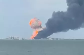 Кадры пылающего ж/д парома с топливными цистернами в порту «Кавказ» Темрюкского района Краснодарского края