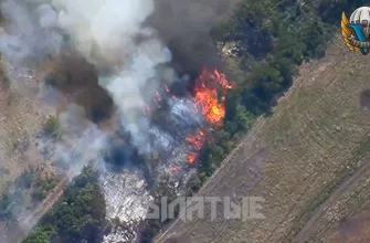 Уничтожение двумя FPV-дронами замаскированной 152-мм гаубицы Д-20 на Запорожском направлении