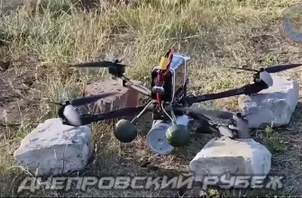 Посаженный РЭБом украинский беспилотник, модель скорее всего Довбуш Т10, снабжён самодельными бомбами для сброса