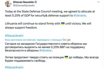 Литва выделит 0,25% своего ВВП на военную поддержку Украины – президент Литвы Науседа