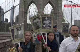 Жители Нью-Йорка спели «Катюшу» во время шествия с портретами ветеранов