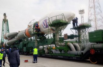 Ракета-носитель «Союз-2.1б», со спутником дистанционного зондирования «Ресурс-П» на борту, вывезена и установлена на стартовую площадку №31 космодрома Байконур