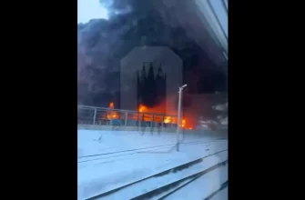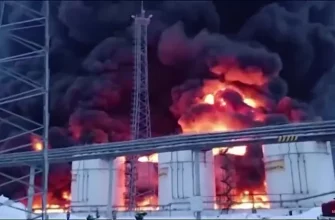 Кадры пожара нефтебазы в Клинцах после атаки украинского БПЛА
