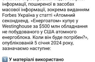 Украинский «Энергоатом» опроверг данные о закупке оборудования недостроенного в США атомного реактора