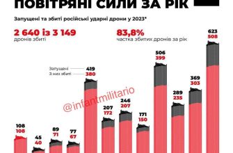 Официальная украинская статистика по числу выпущенных по Украине и сбитых в 2023 году ракет и барражирующих боеприпасов