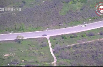 Поражение замаскированной украинской САУ при помощи дрона-камикадзе «Ланцет»