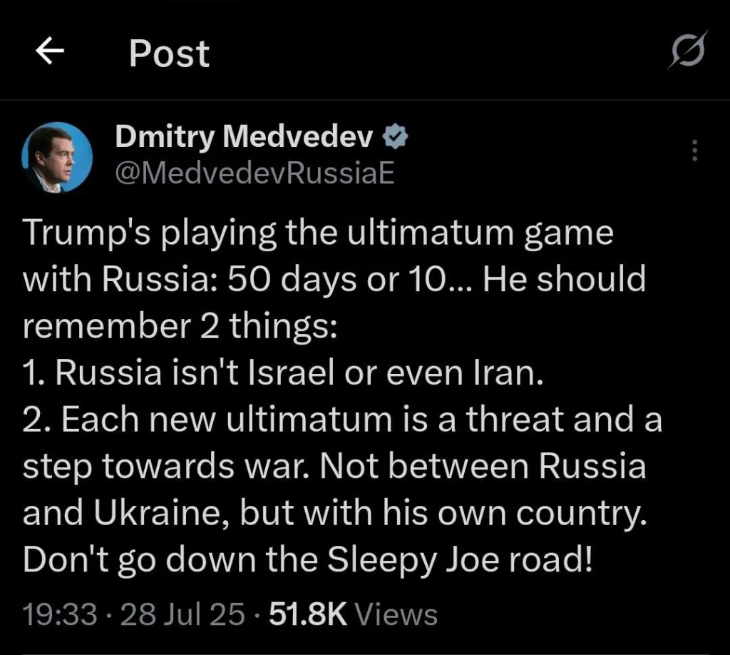 Сенатор Грэм* отреагировал на пост Медведев, где тот заявил о риске войны между Россией и США в случае введения вторичных санкций