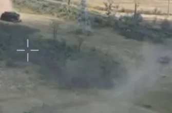 Уничтожение украинского дрона-камикадзе огнём 30-мм пушки 2А42 ударного вертолёта Ми-28НМ армейской авиации