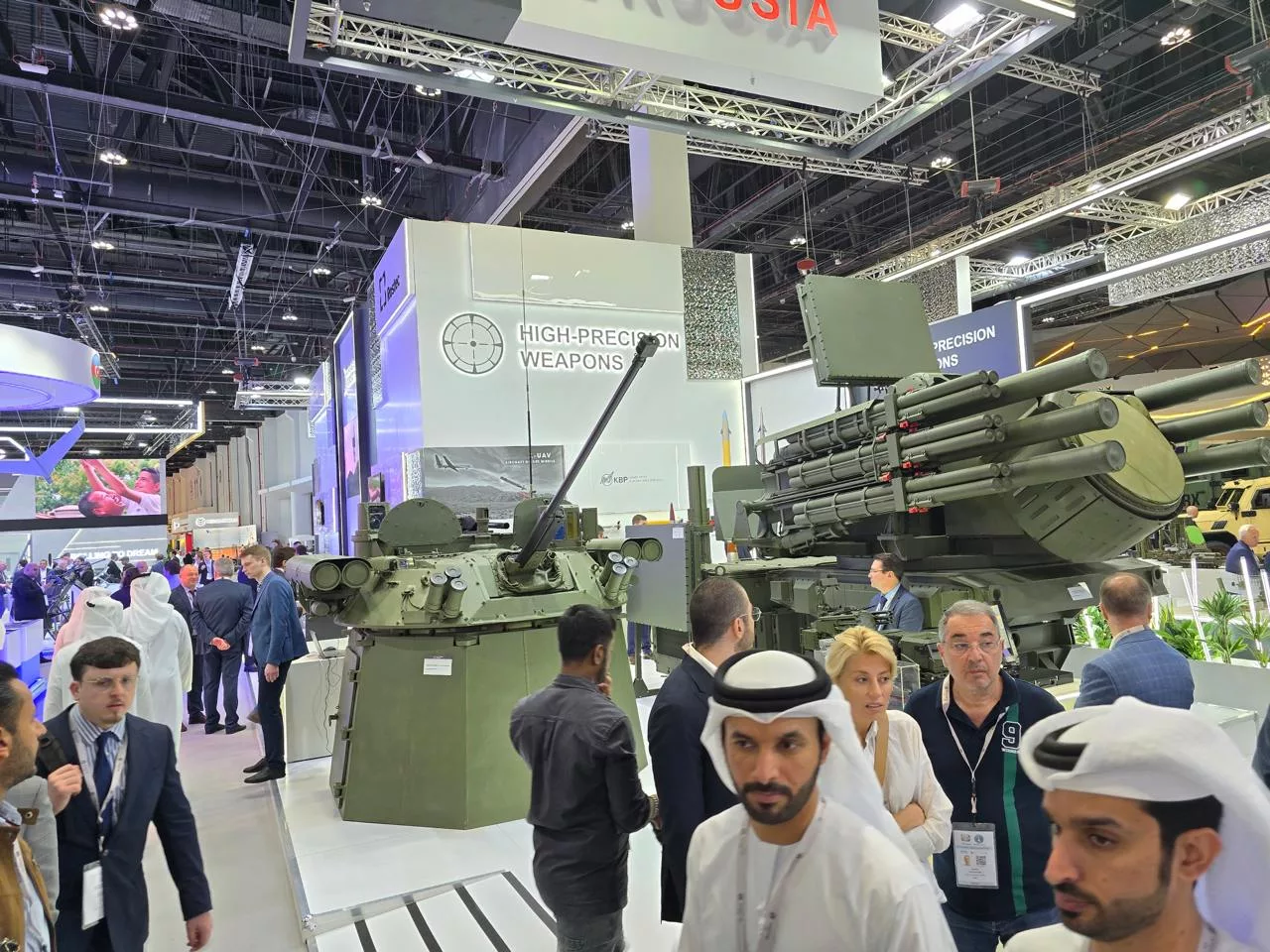 Ростех показал на IDEX почти 200 образцов вооружений, проверенных в реальном бою. Российская экспозиция на выставке занимает более 2 тыс. кв. м. На ней представлено рекордное количество новинок вооружения, военной и специальной техники от 40 ведущих отечественных компаний. Некоторые образцы техники впервые демонстрируются за рубежом. Среди них – обновленный танк Т-90МС, ЗРПК «Панцирь-СМД-Е», барражирующие боеприпасы «КУБ-1-1Э», «КУБ-2-2Э» и ПТРК «Корнет-ЭМ» с пультом дистанционного управления и управляемой ракетой «Булат». Впервые на Ближнем Востоке представлены барражирующий боеприпас «Ланцет-Э» и боевой модуль «Бережок».