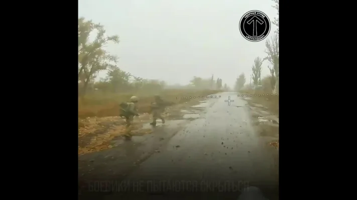 Оператор дрона в тумане тоже не сразу разобрал кто там идет, но все закончилось как надо.