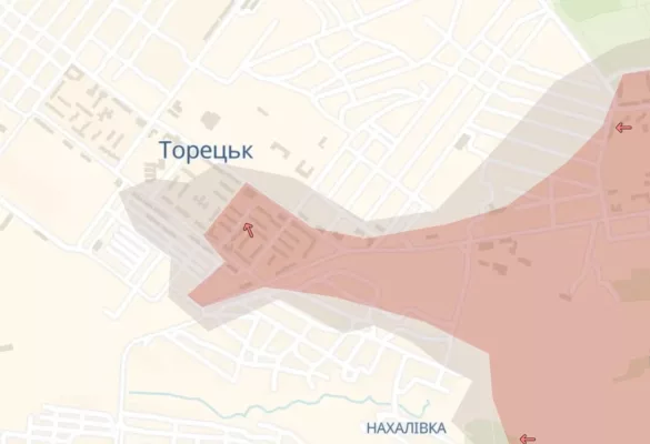 ➡️ Cогласно карте Deep State, россияне находятся уже в центре Торецка и захватили треть города.