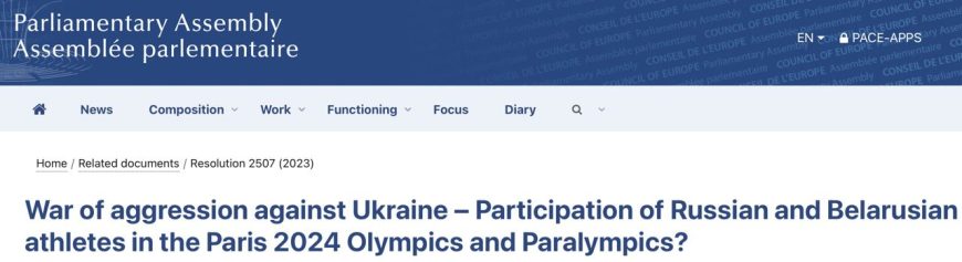 По мнению Парламентской ассамблеи Совета Европы, спортсменов из РФ и Беларуси нельзя допускать до Игр до тех пор, пока продолжается СВО на Украине.
