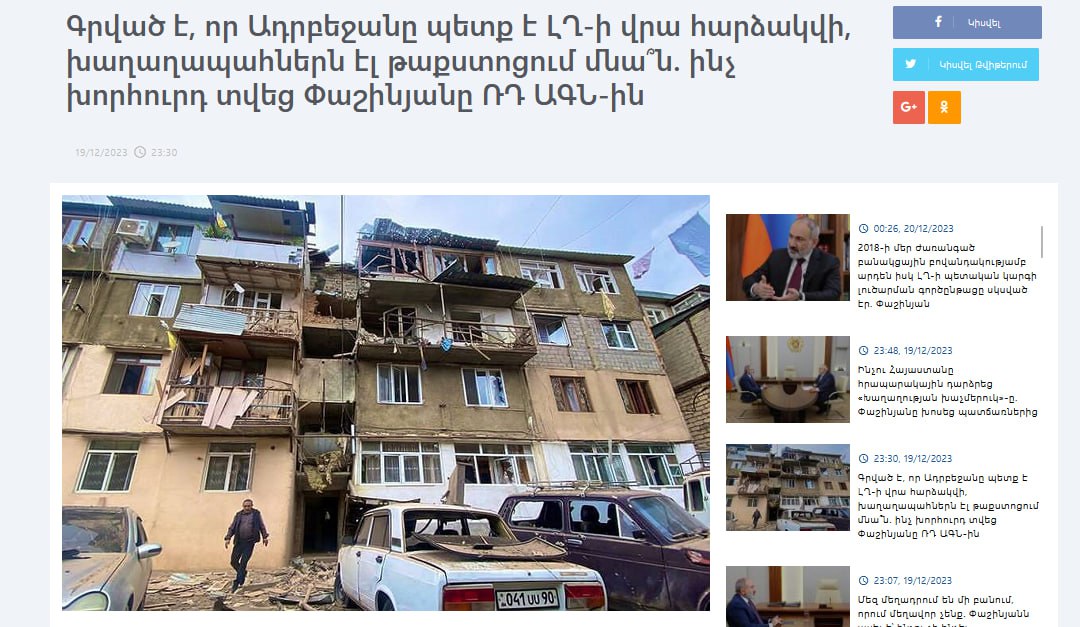 «Хочу обратить внимание на то, что российские миротворческие силы были направлены в Нагорный Карабах на основании решения Федерального Собрания Российской Федерации. И в этом решении написано, что российские миротворческие войска находятся там для защиты мирного населения. Где сейчас мирное население Нагорного Карабаха?» – заявил Пашинян.