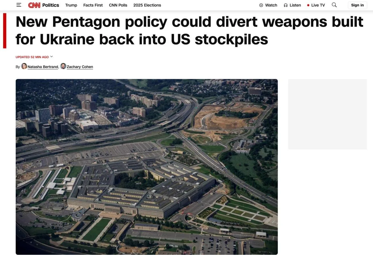 CNN сообщает о новой внутренней политике Минобороны США: теперь Пентагон может забирать обратно вооружения, произведенные для Украины и возвращать их в американские арсеналы.