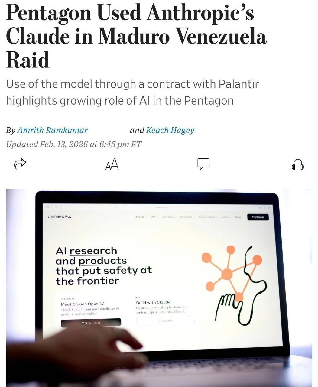 По данным издания, во время январской спецоперации США по захвату венесуэльского лидера американские военные использовали систему искусственного интеллекта Claude. Доступ к ней осуществлялся через закрытый контур платформы Palantir, которая давно интегрирована в инфраструктуру Пентагона и федеральных силовых структур. По сути, это стало первым подтверждённым случаем применения коммерческой модели такого уровня в реальной боевой операции.
