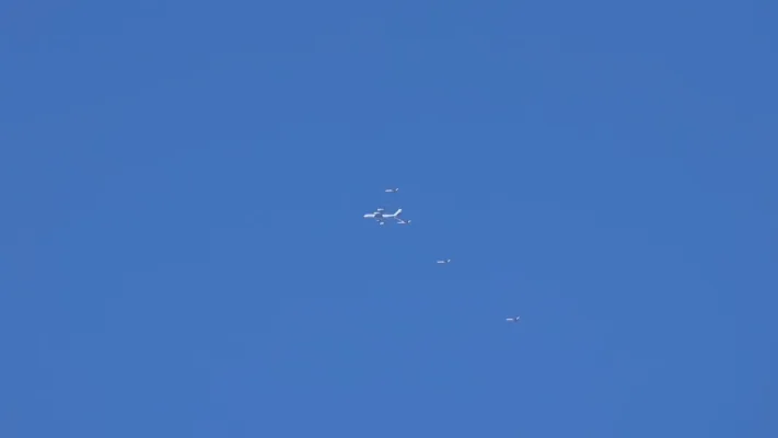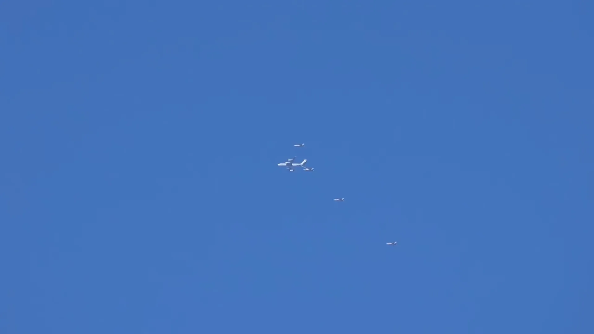 На видео запечатлен истребитель F-35A VALKYRIE 04–06, направляющийся в Иорданию при поддержке самолета-заправщика KC-135R “LAGER 11”.
