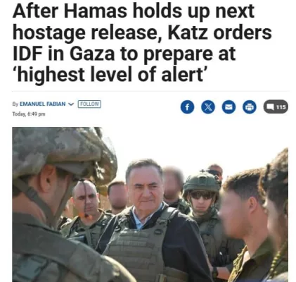 Так Исраэль Кац ответил на отказ ХАМАС освободить новую группу заложников 15 февраля. В радикальном палестинском движении приняли такое решение из-за многократных нарушений режима прекращения огня со стороны израильской армии.