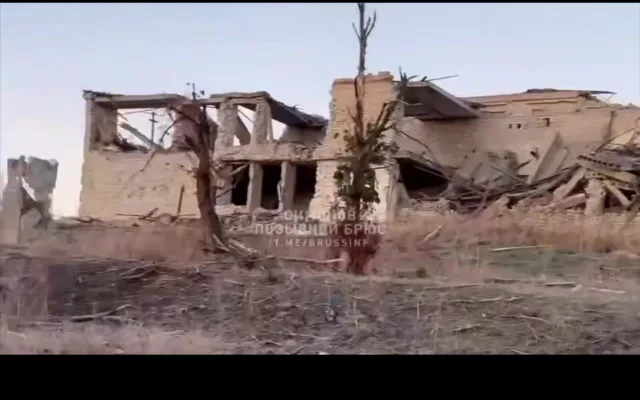 За село шли долгие и кровопролитные бои. На кадрах видно, что в нем не осталось почти ни одного целого здания.
