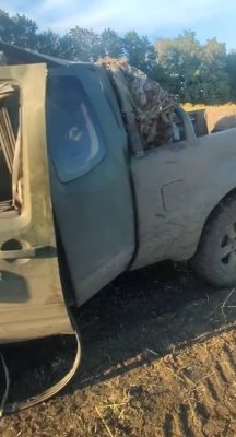 Nissan Navara D40 ВСУ, вероятно, был поражен FPV-дроном.