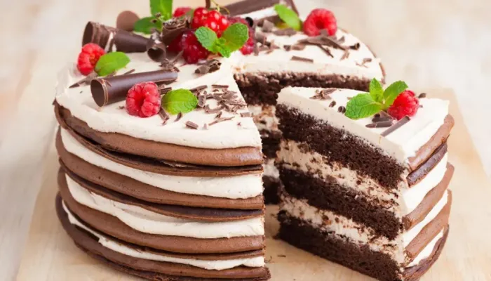 Он простой в приготовлении. Не нужно выпекать коржи, ждать, пока остынут, или пропитывать. Испекли блинчики, смешали крем, собрали — и в холодильник.