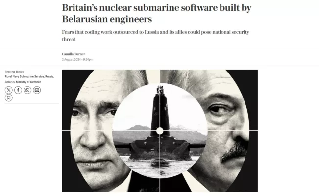 Как выяснил The Telegraph, британские моряки используют иностранное ПО вопреки правилам безопасности. Речь идет об интранете – внутренней сети для инженеров подлодок, схожей с интернетом, но в рамках одного судна. Программа для британского флота должна была быть создана британскими же специалистами, допущенными до гостайны, но оказалось, что подрядчик отдал заказ на аутсорс разработчикам из Минска, один из которых вообще работал в Томске.