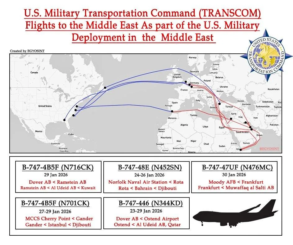 Так, по линии Транспортного командования США (USTRANSCOM) были выполнены как минимум 5 рейсов, в рамках которых самолёты Boeing 747 незаметно доставляли технику с баз ВВС, Корпуса морской пехоты и ВМС США в регион. Видимо, примерно так же идёт и переброска грузов в польский Жешув для дальнейшей передачи Украине.