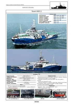 - Предназначался для пополнения состава СФ ВМФ. Всего же в эксплуатации находятся ещё 3 буксира два на ЧФ и один на ТОФ. О четвертом судне «Капитан Сергеев» точных данных нет, но в феврале 2025 года выяснилось, что через суд Министерство обороны потребовало с Ярославского судостроительного завода 1,5 млрд рублей за двухлетнюю просрочку передачи буксира «Капитан Сергеев».
