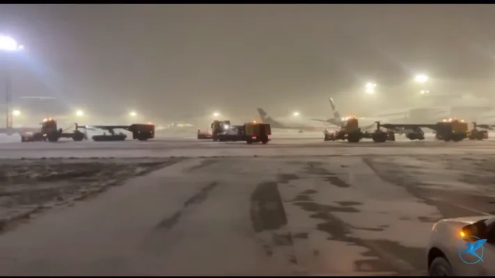Минувшей ночью рейсы то и дело откладывали — из-за снегопада приходилось чистить полосы, а противообледенительная обработка тормозила вылеты. В столице объявлен жёлтый уровень опасности, а сильные снегопады продлятся ещё минимум на три дня.