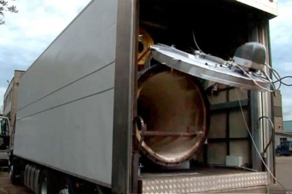 Вот нашла статью под такой же фотографией: Установлено, что грузовое авто, выдаваемое за мобильный крематорий — это инсинератор ИН-50.1К. Он был разработан в Санкт-Петербурге компанией «Турмалин» более десяти лет назад – в 2011 году – и предназначен для экологически безопасной утилизации биологических отходов I-V классов опасности. Само же видео, которое сейчас западные и украинские СМИ пытаются выдать за запечатленное на днях, было снято еще в 2013 году. Его автор – компания-разработчик, а оригинал ролика размещен на ее официальном YouTube канале. В ролике на самом деле показан процесс сжигания мешка с мусором.
