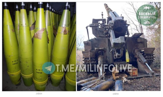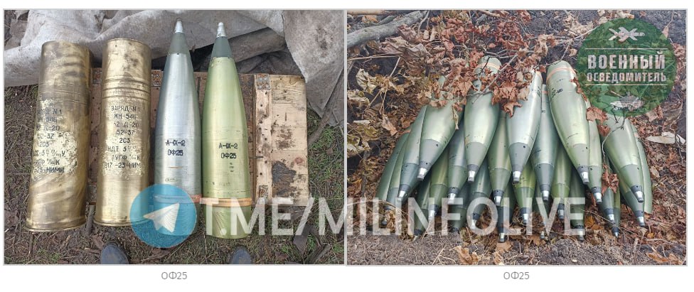 Так, на публикуемых кадрах обращают на себя внимание 152-мм снаряды 3ОФ64 для орудий «Мста-С» и «Мста-Б», 152-мм снаряды 3ОФ25 для «Акаций» и Д-20, 122-мм снаряды 3ОФ56 для 122-мм «Гвоздик» и Д-30, а также 152-мм снаряды 3ОФ59 для «Гиацинтов-С» и «Гиацинтов-Б».