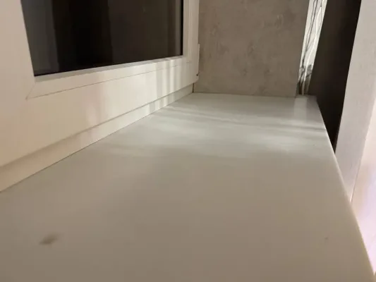 - Подготовка поверхностей. Старую пену с отлива я срезал, затем тщательно обработал его поверхность наждачной бумагой и жесткой щеткой. Для улучшения адгезии помыл его под струей воды.