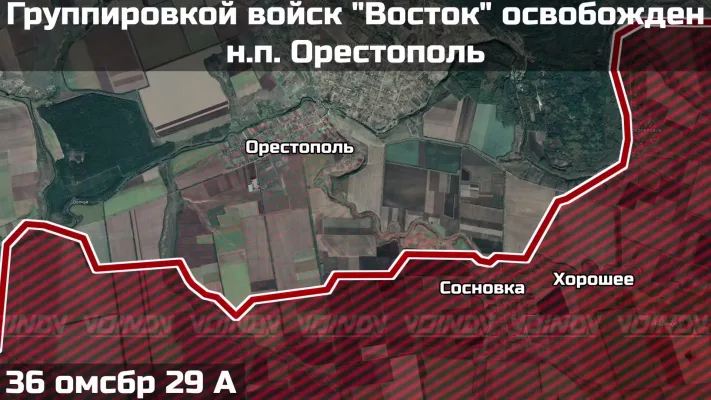 - Штурмовые подразделения 36 гвардейской мотострелковой бригады 29 армии группировки войск «Восток» с опорой на освобождённое ранее Волчье и прилегающие территории, вклинились в оборону противника на глубину более 4 км и полностью освободили населённый пункт Орестополь Днепропетровской области.