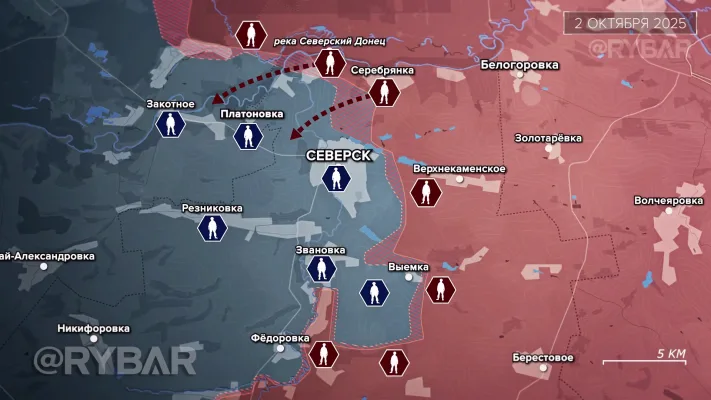В октябре российские войска продолжили сжимать тиски вокруг Северска. На северном фланге бои сконцентрировались у русла Северского Донца, а на юге штурмовики теснили противника под Звановкой.