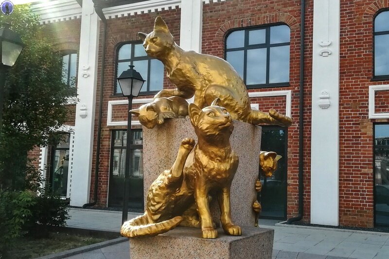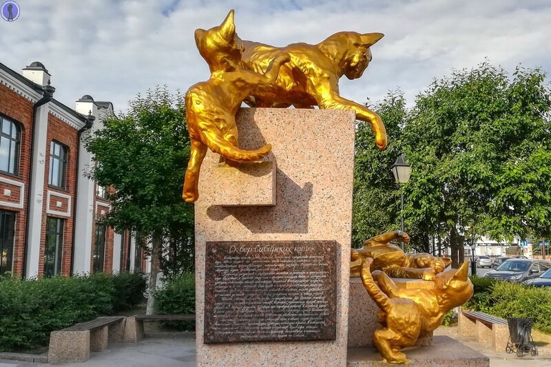 Вы любите котиков? Обычно мы не публикуем достопримечательности посещённых нами городов, но в этот раз мы решили отойти от основной тематики и в качестве исключения рассказать про одну из самых необычных памятных достопримечательностей, которую мы встретили в городе Тюмень, где у здания старой типографии на улице Первомайской находится Сквер Сибирских кошек с замечательными статуями котиков с грустной, но героической историей.