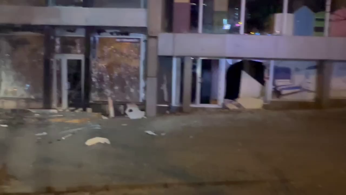 Практически сразу же после курантов под огонь попали Ворошиловский, Калининский и Буденновский районы Донецка: повреждения получили жилые дома, гостиница «Донбасс Палас» и легковые автомобили.
