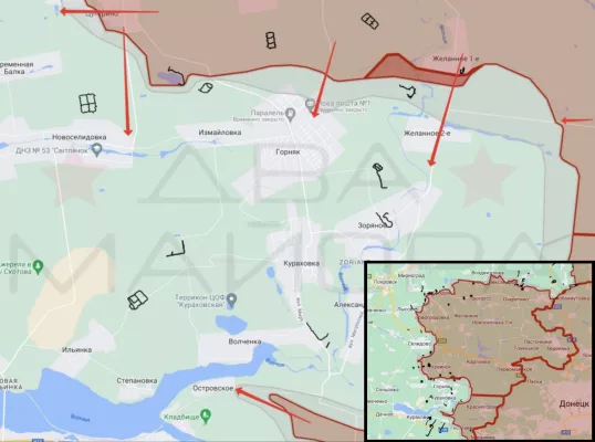 Горняк под авиаударами ВКС России, бои в районе Желанного Второго. Южнее ВС России наступают на Островское.