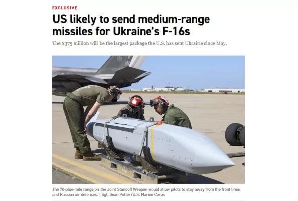 По данным издания, в Вашингтоне сейчас рассматривают возможность поставки ракет AGM-154 Joint Standoff Weapon, бьющих на расстояние около 110 километров. Если боеприпасы будут переданы Киеву, то, вероятно, войдут в новый пакет американской военной помощи, о котором будет объявлено на следующей неделе.