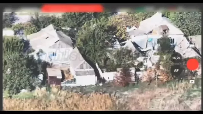 Стоило хохлу на мгновение появится в поле зрения нашего оператора, так беспилотные птички принялись разбирать домик поросят.