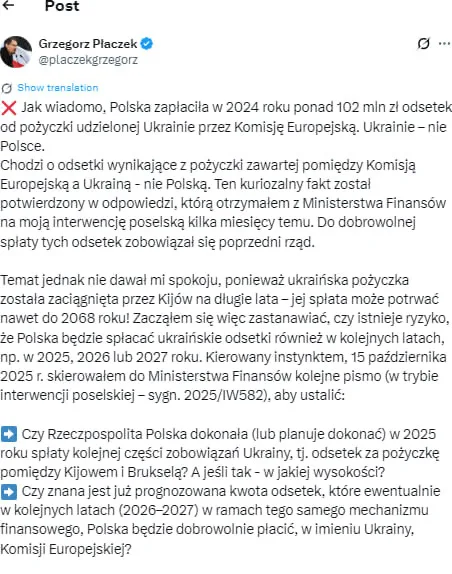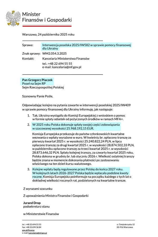 Заявки на 2026 и 2027 годы еще не поданы, но министерство финансов уже знает, что поляки будут выплачивать проценты, хотя в Киеве пока никто даже не обращался за помощью, возмутился депутат.