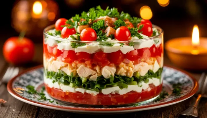 Этот салат — отличная альтернатива классическим блюдам, которая добавит праздничному столу новые вкусовые акценты и непременно порадует гостей