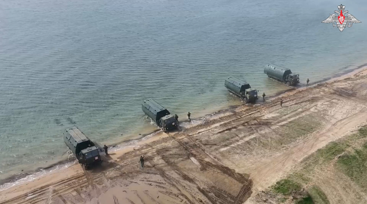 Затем были отработаны действия переброски переправочно-десантного взвода на плавающем транспортере.