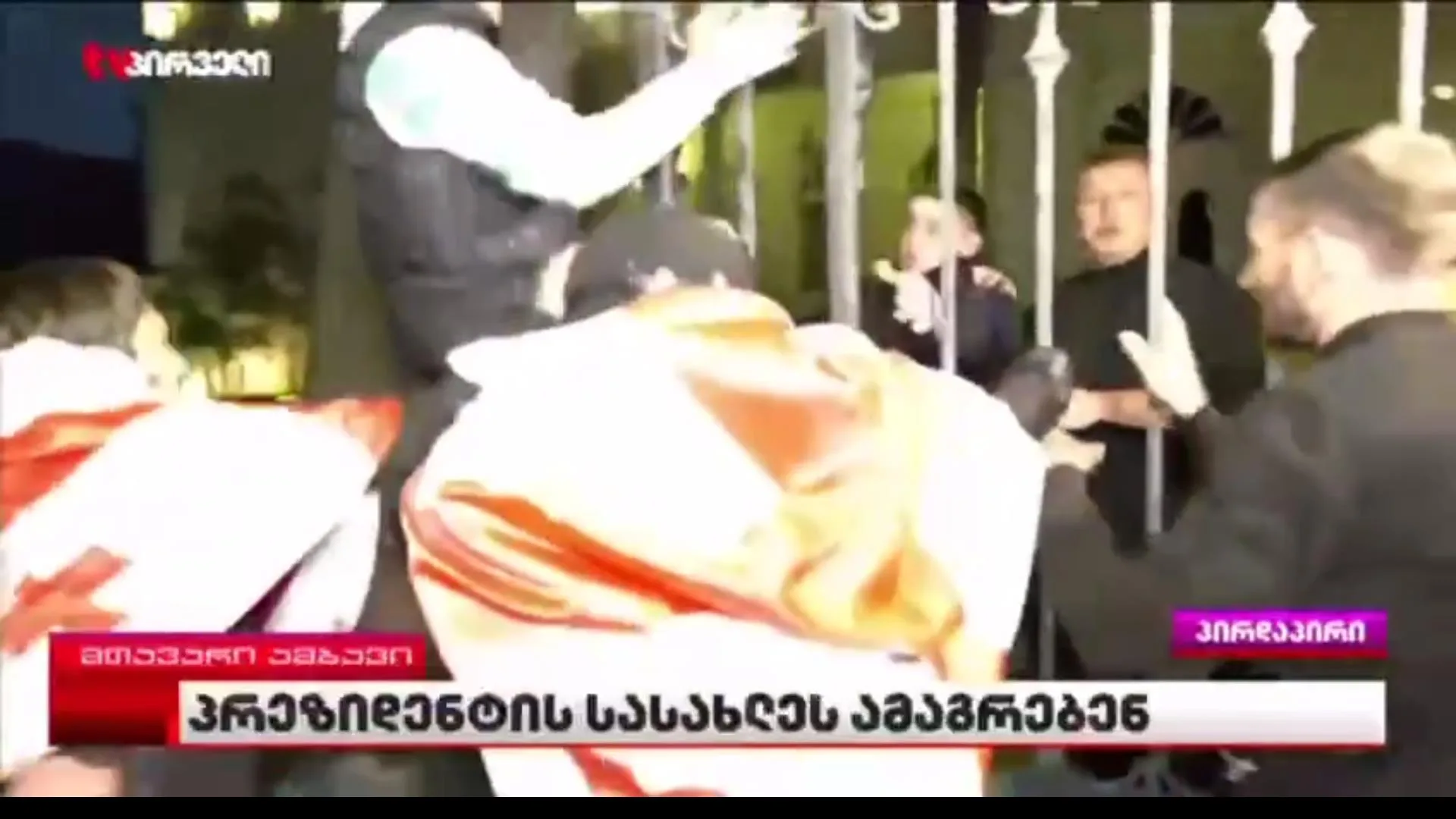 Митингующие в Тбилиси ворвались во двор резиденции президента Грузии, пробив железные заграждения, спецназ применил против них перцовый спрей, передает телеканал Пирвели.