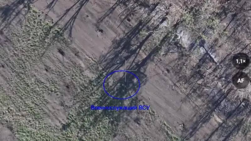Глаз у операторов БПЛА наметан — они сразу распознали обман и точно отправили два сброса прямо в цель. Итог предсказуем: очередной украинский боевик стал «двухсотым».