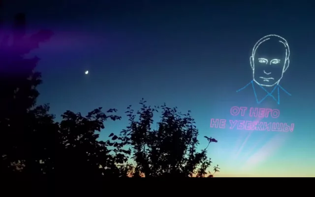 «От него не убежишь», – пригрозили боевикам авторы лазерного шоу в день рождения президента РФ.