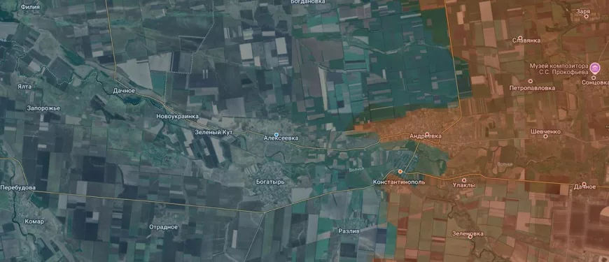 От Украинки (села в одну улицу, где ВСУ вряд ли станут закрепляться) до границы с Днепропетровской областью всего 1,5 км. От текущей локации под контролем «южных» — всего 13 км.