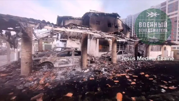 Из интересно в кадре видны легкие танки Scorpion-90, бронеавтомобиль Dragoon 300, сгоревшие китайские НРК-амфибии VP4 ATV Lynx 8×8 и несколько КАМАЗов.