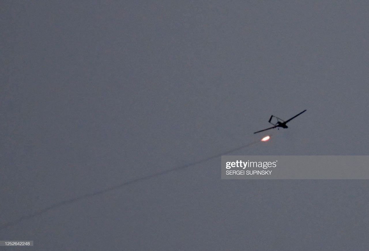 Кадр за мгновение до попадания украинской зенитной ракеты в свой же БПЛА Bayraktar TB2 в небе над Киевом.
