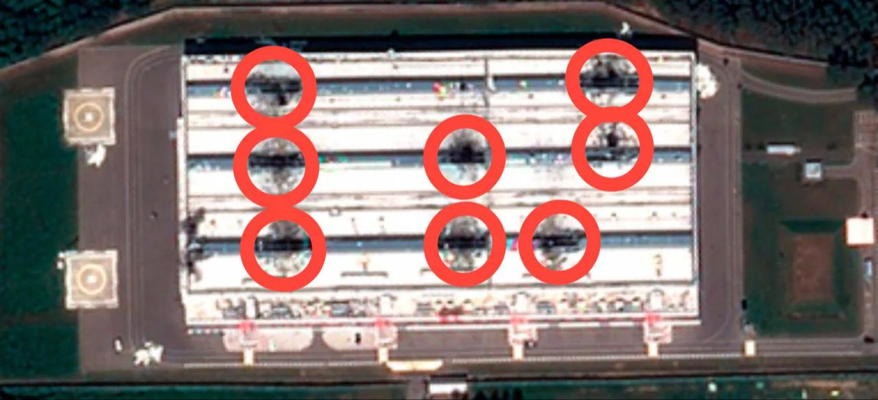 Точность прилетов можете оценить сами — как минимум 8 дронов попали точно вдоль центральных технологических пролетов над основными производственными линиями. Судя по всему, никакого воздействия РЭБ на них не оказывалось, либо беспилотники его преодолели.